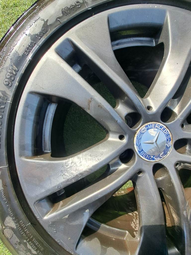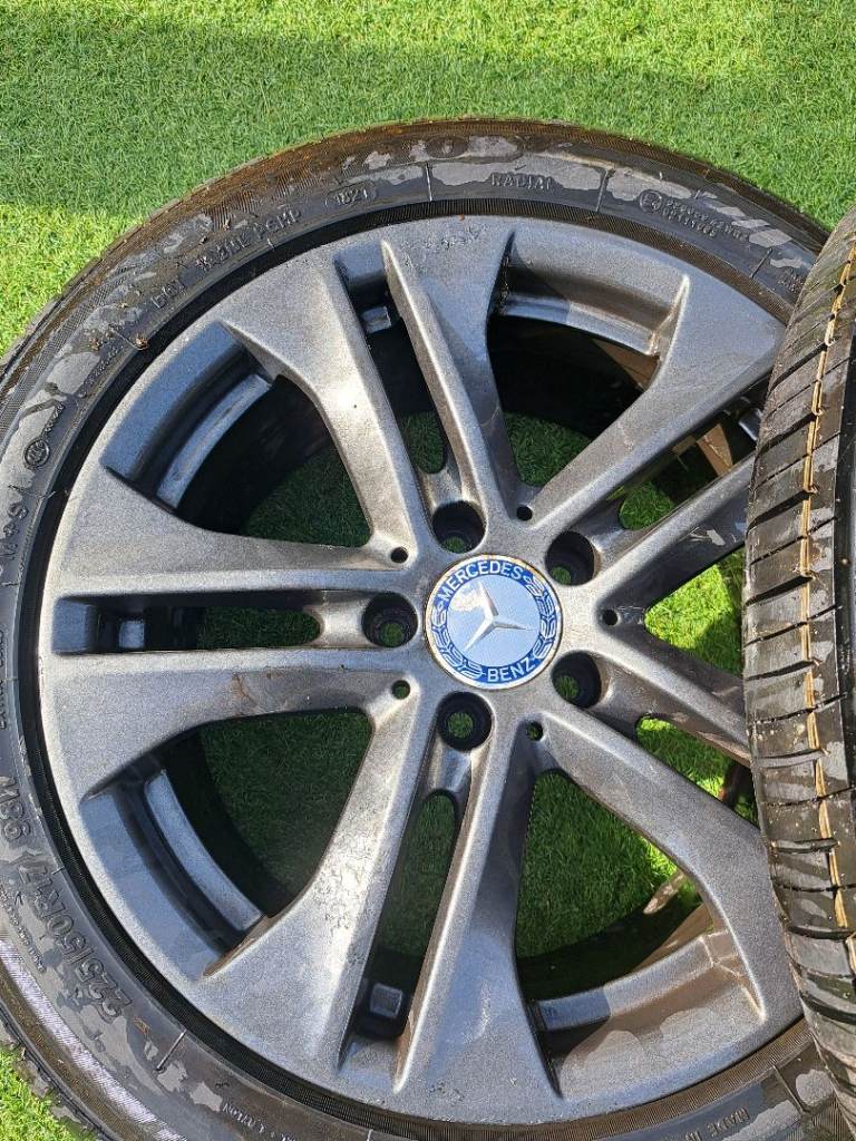A set of 4 17 alloys frm a Mercedes 5 stud with 1 brand new tyres and 3 jst as gd
