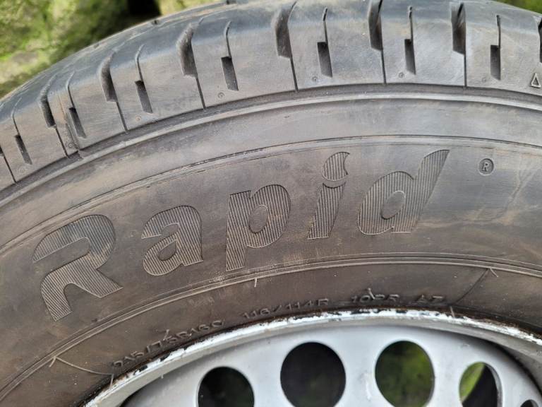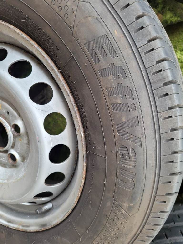 These are like new effi van tyres on vw crafter fwd 5 stud wheels the tyres are size 215 75 16c matching