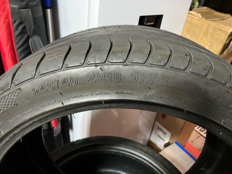 2x 245/40/18 Accelera PH1-R tyres with between 6-7 mm of tread so pretty much hardly used, these were removed from a previous car which I no longer have so just taking up space in garage.