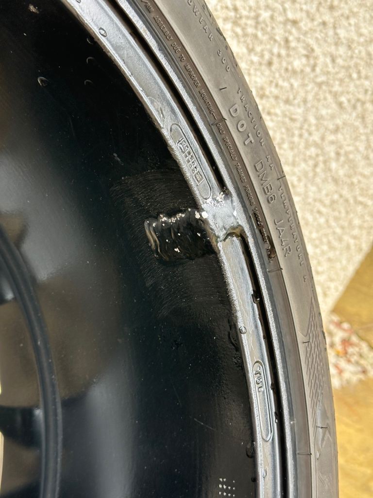 The alloys are in good condition but are showing signs of corrosion. They have never been curbed with no damage to the rim. One wheel has been professionally welded due to a 1” hairline crack, shown in pictures.