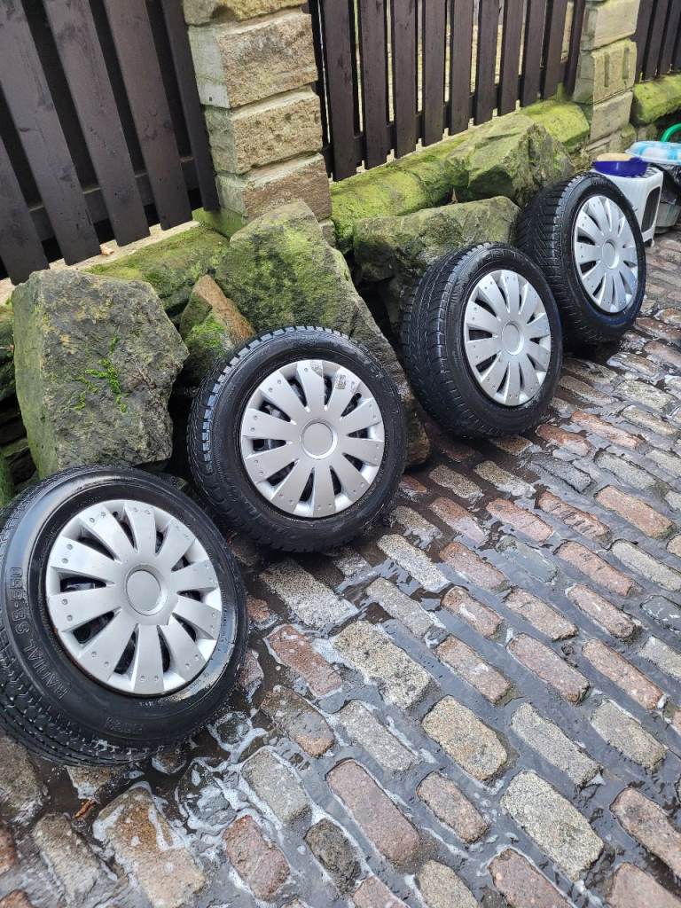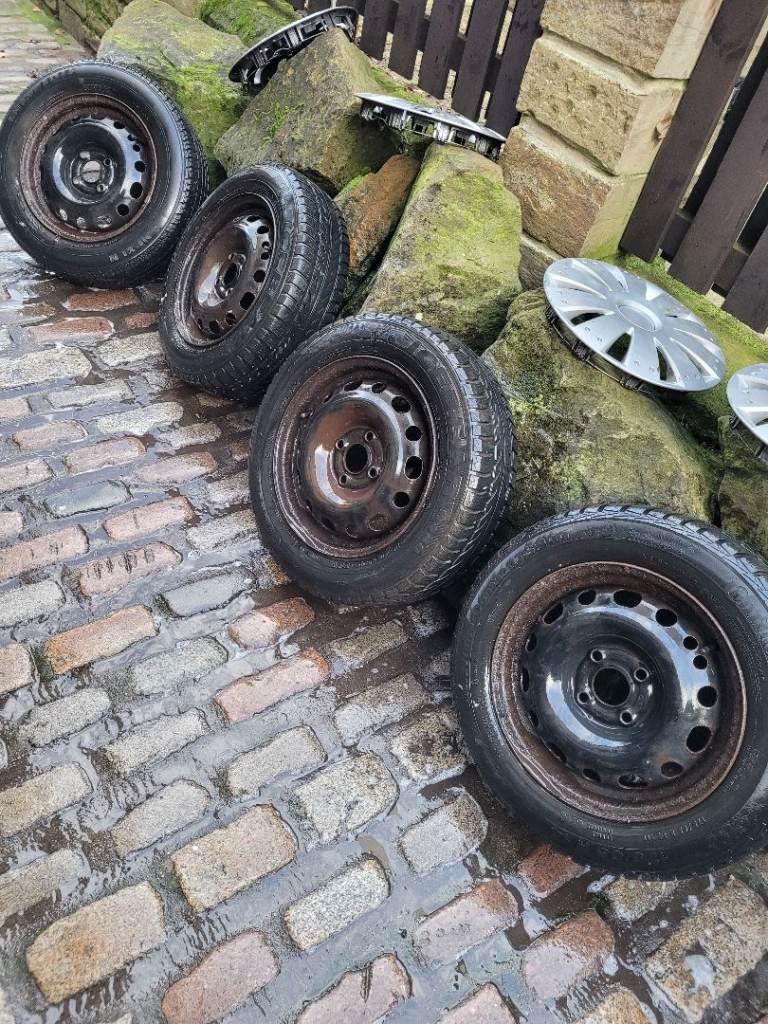 These are 4x good steel wheels for vauxhall corsa with 4 stud type with 4 good all season winter tyres with good tread and tyre size 175 65 14