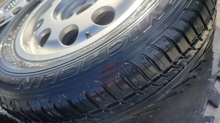 4 very good condition original alloy wheels, the 5th alloy has a few scuffs as was the spare and 3 very good condition tyres.