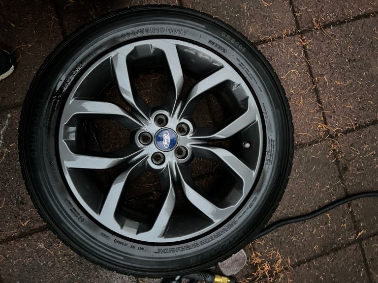 Very good condition 19” Alloy Wheels with 235x55x19 Tyres. Anthracite Grey. TPMS (Tyre Pressure Sensors) included. Can also include new centre caps. Will suit a range of SUVs with 5x108 stud pattern including Land Rover, Range Rover, Ford, Jaguar and Volvo. Can also be put onto lower profile tyres to suit the likes of Ford Focus, Volvo V40, V50, V60, V70, C30, S40. Jaguar XE and XF, Ford Mondeo and Focus.