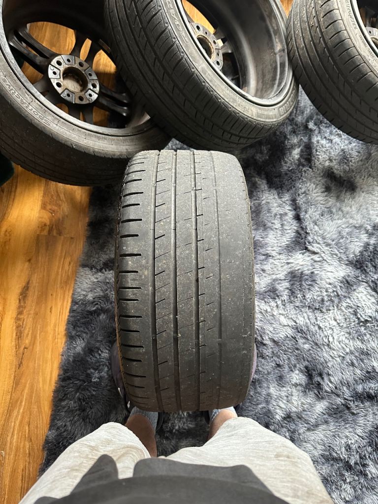 613M BMW alloy wheels. Good tyres all round apart from one that’ll need changing. Got a bit of curbing on front left and could do with a refurb.