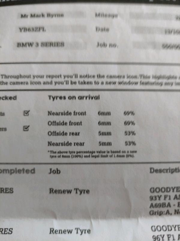Part worn, 5 mm of tread. Good condition no repairs. These are 2022 tyres and we're removed from my vehicle for a tyre upgrade.