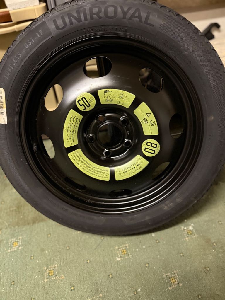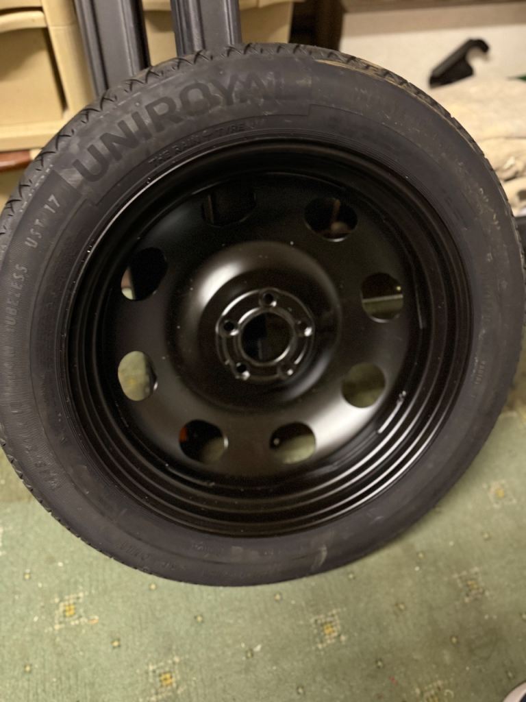 Here I have an 18” fully refurbished alloy wheel and tyre. It was used on a 3008 Peugeot (2021). Also have an 18” space saver for the same vehicle. Space saver was never used. The alloy is £150 and the space saver is £70