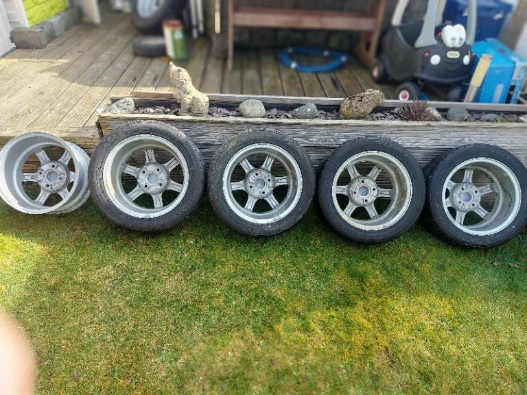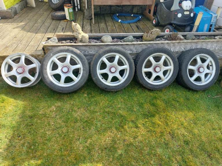 Rimstock cosmos 15 inch alloys( ford fitting) 4x108 fitted with toyo proxy 195 50x15 tyres standard factory fitment to westfield v8 kitcar no damage of scuffs 5x wheels in total kept under cover in my garage for a few years still got my car but upgraded to 15x9 et 0 rims