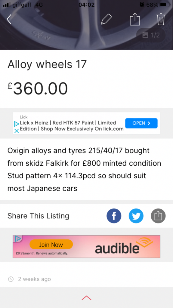 Oxigin 4 with good tyres cost £800 from skids Falkirk mint condition