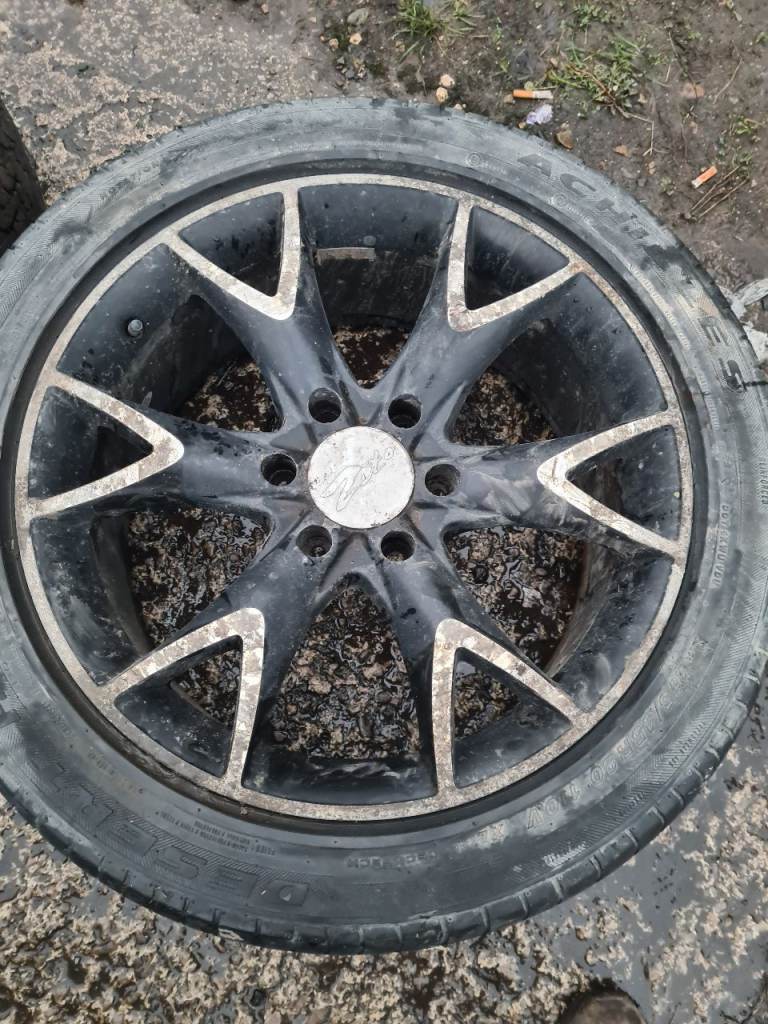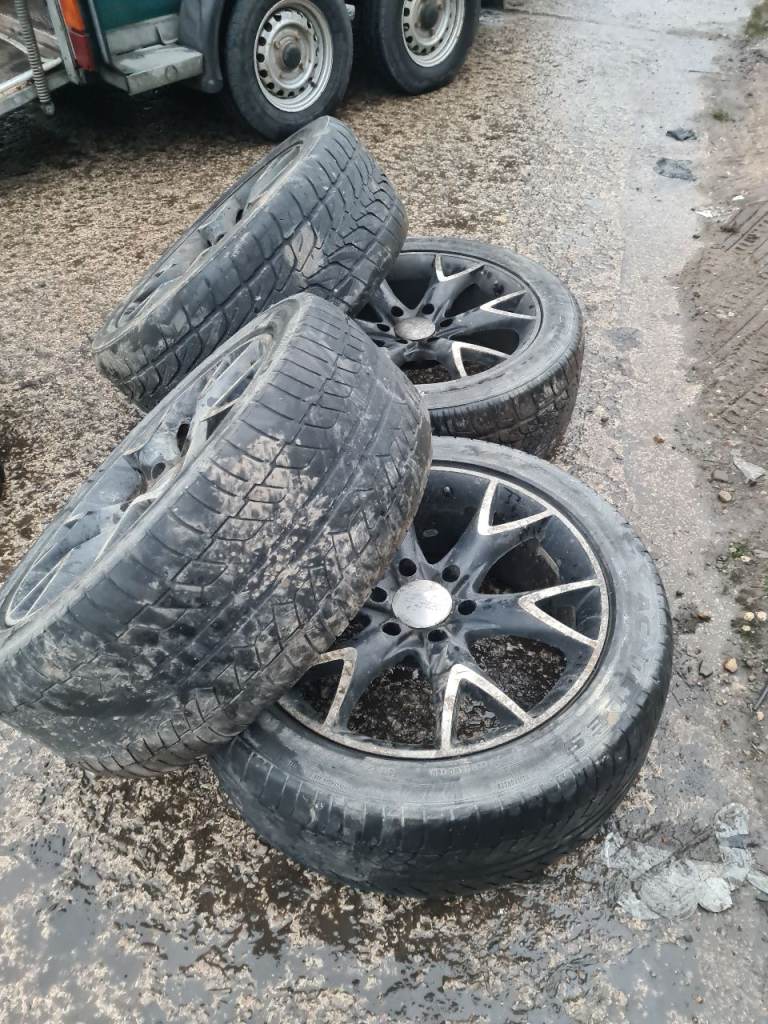 Set of 4 alloy wheels 20in all other sizes are in the pictures tyres arnt the best could possibly fit a transit van/custom etc will clean up to be a nice set of wheels £130