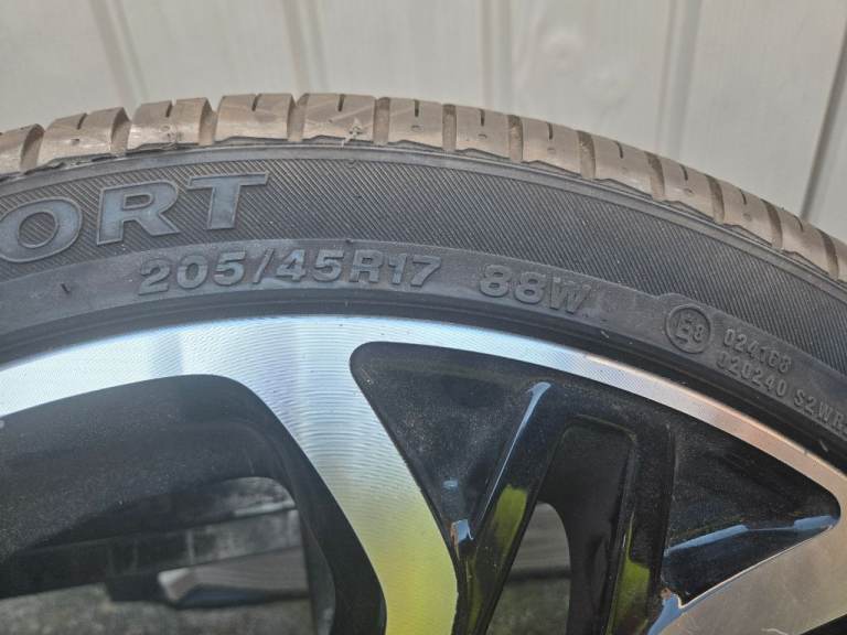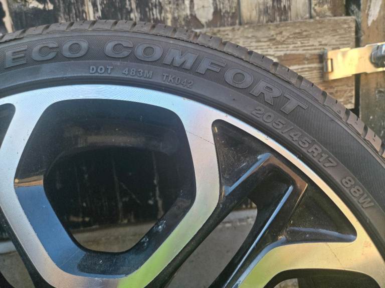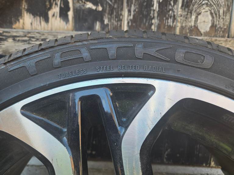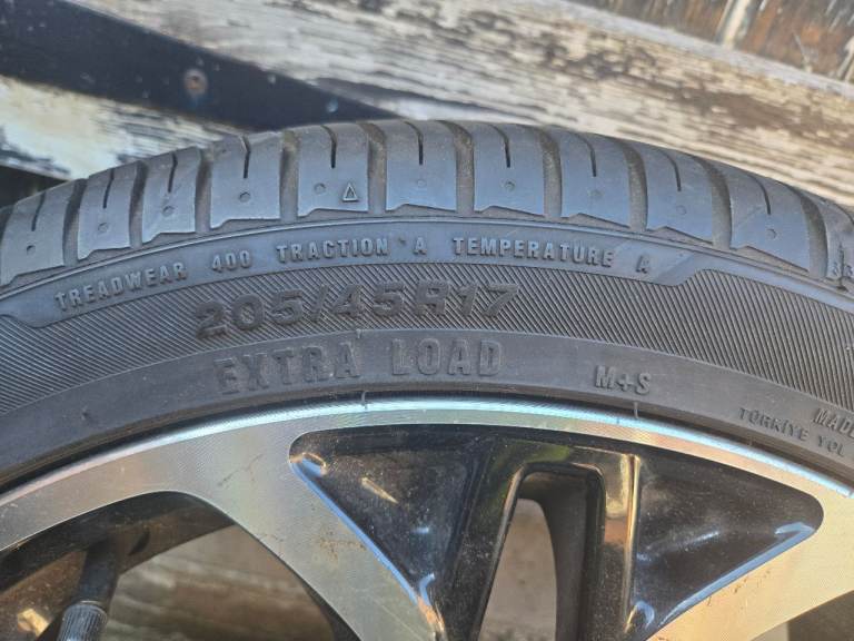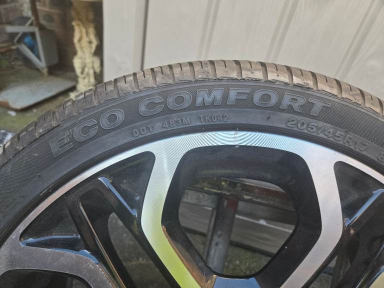 Set of 4 17 inch alloy wheels with almost new Tatko tubeless steel belted radial tyres still has the rubber tags on the sides,alloys in great condition size 205/45R17 £400. First to see will buy pick up only