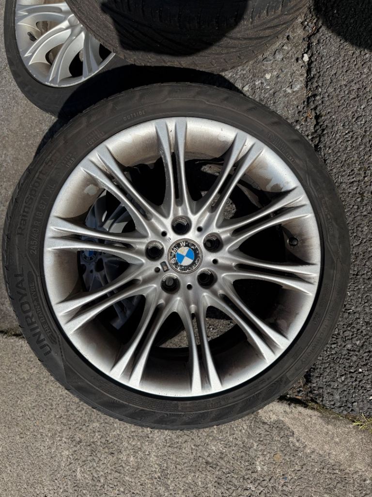 BMW wheels with UniRoyal tyres on all wheels all with 5mm tread on, wheels are in a used condition, no cracks!