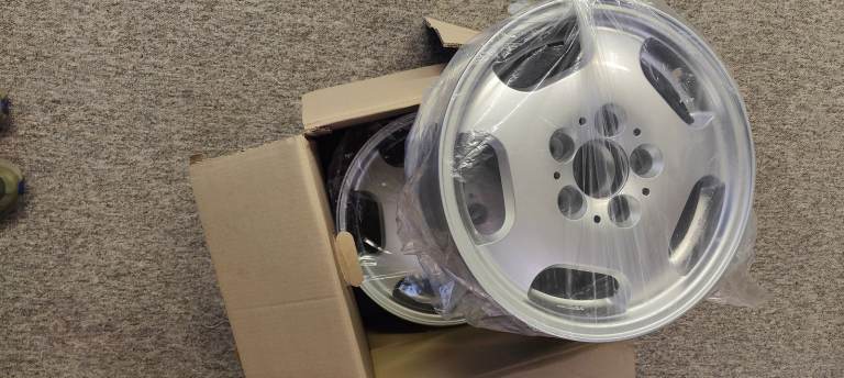 Posting for 6+ yearsAlloy wheels - Mercedes, 7J x 15, 5x112 PCD. As NEW, Never fitted, 4 wheels