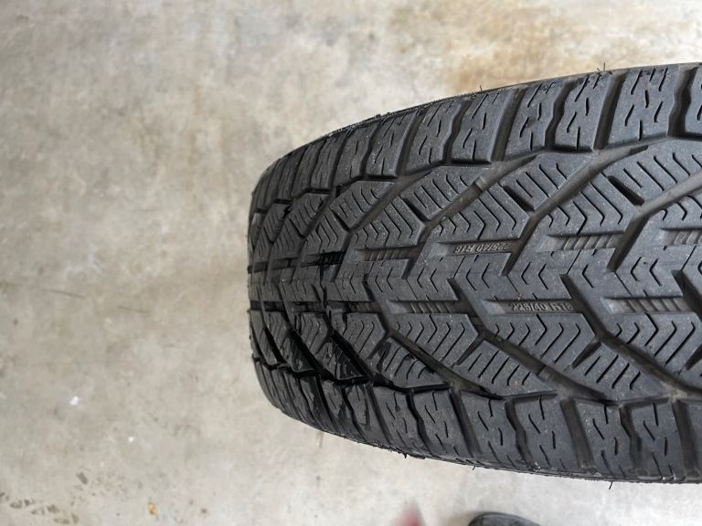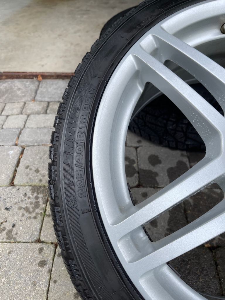Wheels with winter tyres, fitted with Mercedes pressure valves. Tyres good condition, a few scratches on alloys.