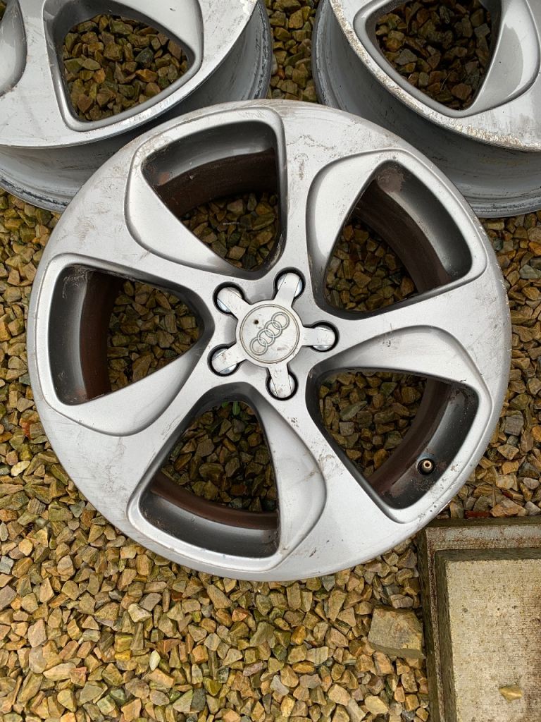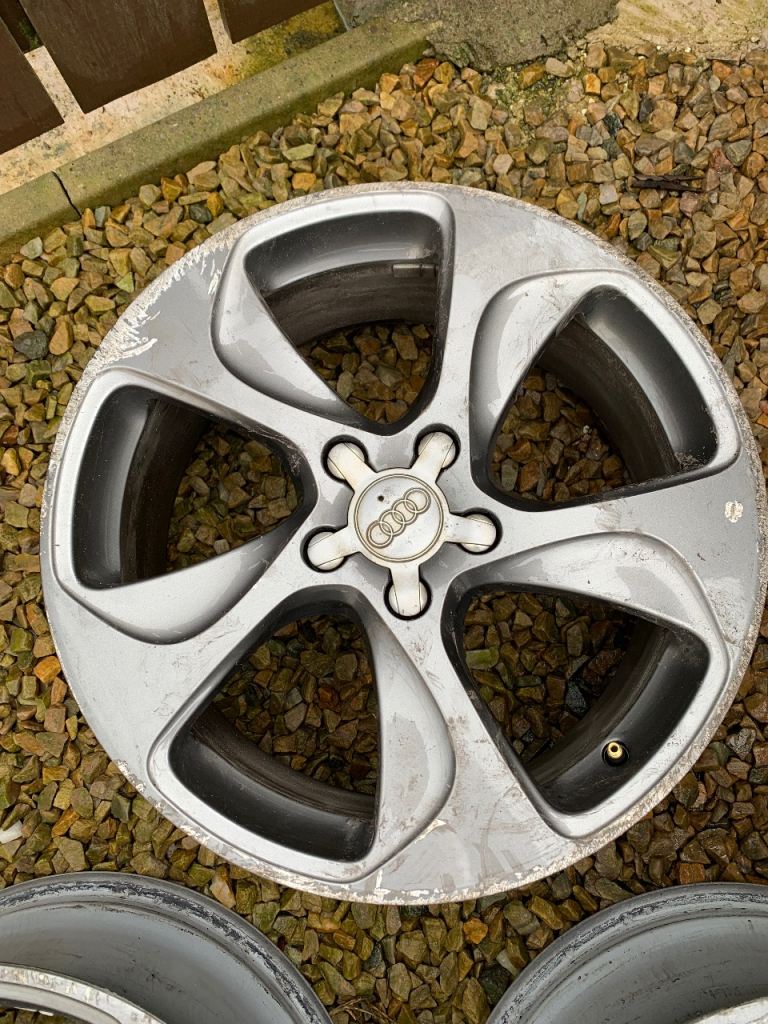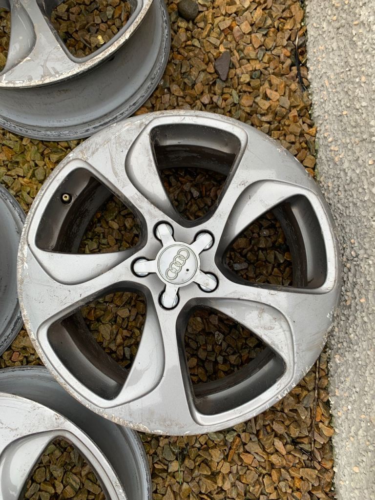 Genuine 18 inch Audi alloys. Gunmetal grey. All alloys have kerbing marks but no bends, cracks or welds. 4 centre caps. No tyres. 150 or nearest offer