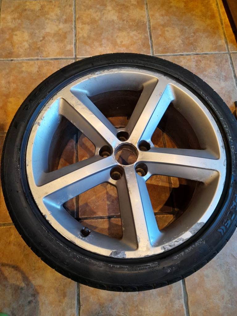 5X12 WHEEL CENTRE SETTING, FITS MOST 18 INCH AUDI'S, TYRE IS WELL WITHIN ROAD LEGAL REQUIREMENTS, 4MM , USED AS SPARE RATHER THAN SPACESAVER , REASONABLE CONDITION £35 ONO , TYRE IS IN GREAT CONDITION ALBEIT WORN .