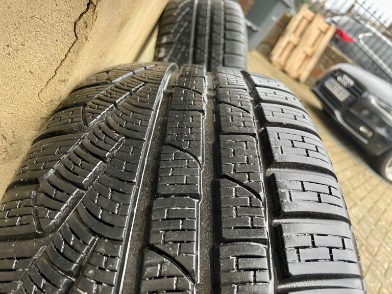 Fantastic condition wheels with matching Pirelli winter tyres with loads of tread. Only done around 2000 miles. They are A8 D4 fitment but I had them on my D3 with bore adaptors and ran great. Only selling as the car they were on is getting sold. Will come with centre caps as shown.