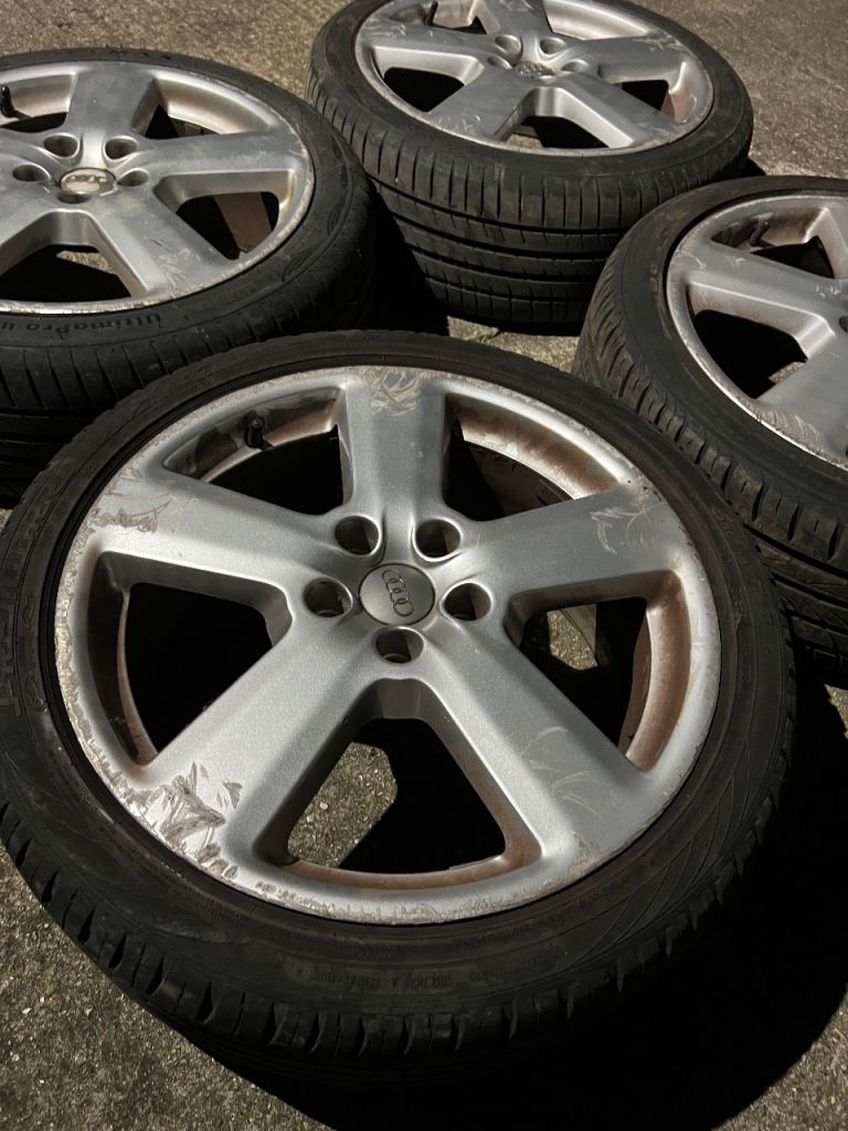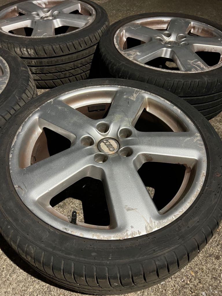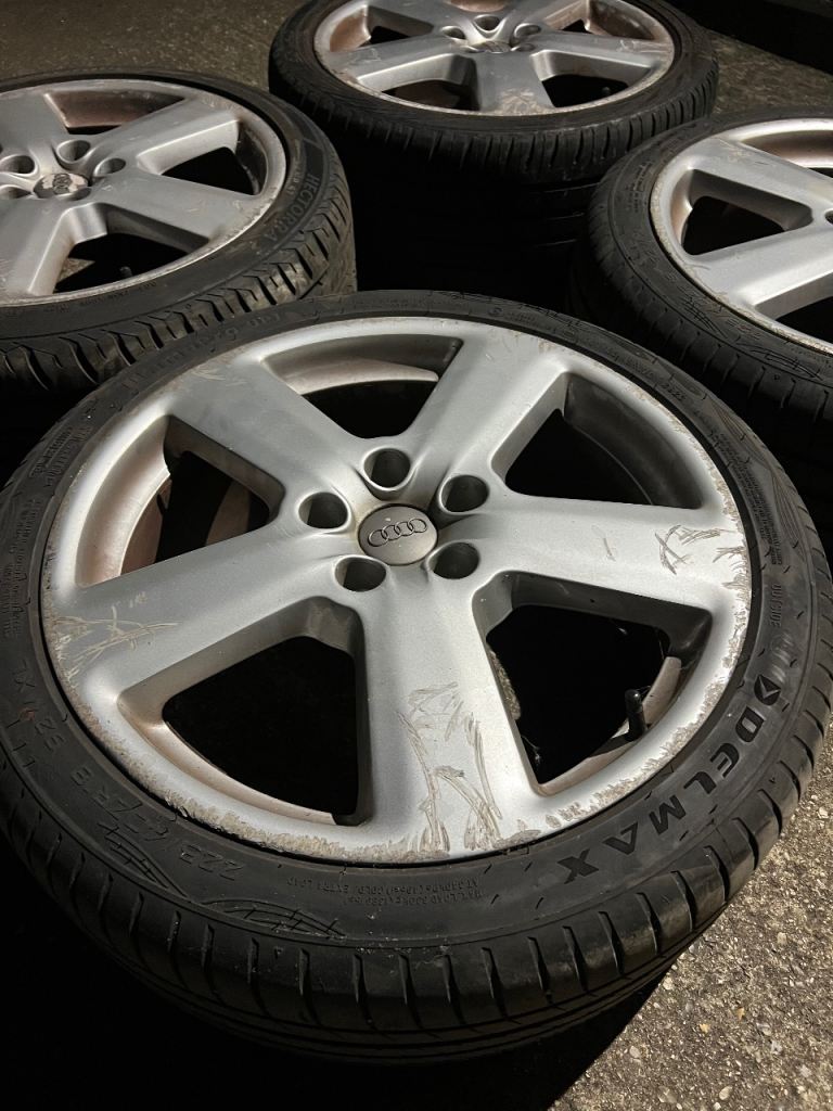 Posting for 12+ yearsAudi Ronal 5 spoke 18” alloy wheels 225/40/18 tyres genuine 5x112 7.5J ET54 A3 A4 Caddy Golf Leon