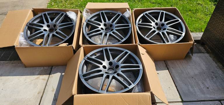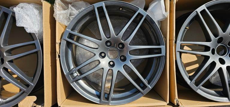 The product is a set of 19" Authentic Audi Alloy wheels pert number 8J0601025N. Designed specifically for Audi TT and TTS models. Made in Italy, these grey-coloured wheels have a width of 235/35 although I have had 255 on them. These wheels are authentic Audi parts, perfect for enhancing the look and performance of your vehicle. The 19" size offers a stylish and sporty touch, while the high-quality construction ensures durability and reliability on the road. Upgrade your Audi with these sleek and modern alloy wheels for a touch of luxury and style.