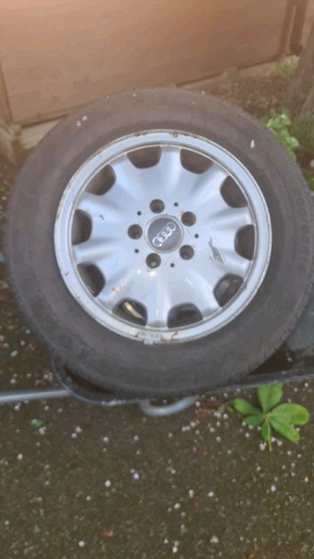 3 audi wheels removed off a trailer. With tyres but these are old but hold air. 205/65 r15 tyres