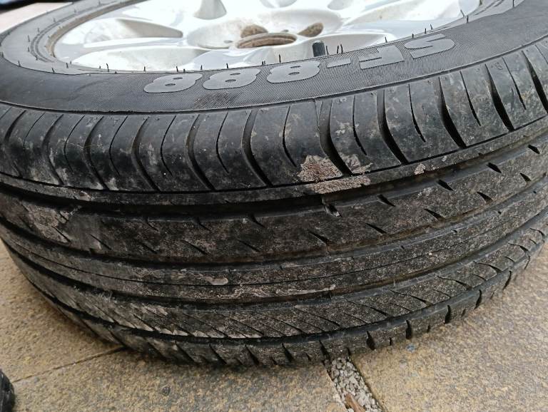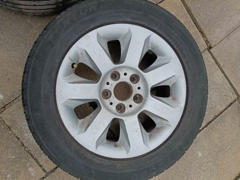 BMW 16inch alloys X 3 in good conditon with good tyres approx 5mm thread on the tyres,has 225x55x16 tyres .
