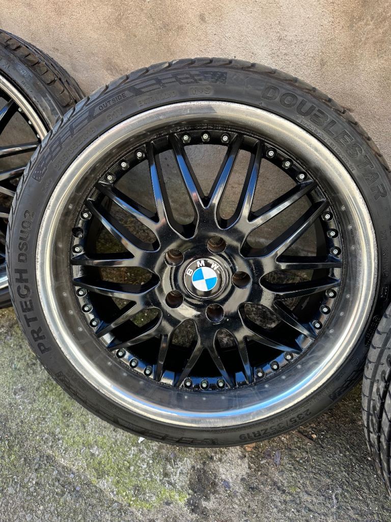 Bmw 19” alloys , front tyres good , rears need replacing , staggerd wheels with wider rears , 8.5j front and 9.5j rears all with an ET 35 , study pics for condition , no cracks or previous weld repairs , nice wheels £380 ono collection only from hartlepool