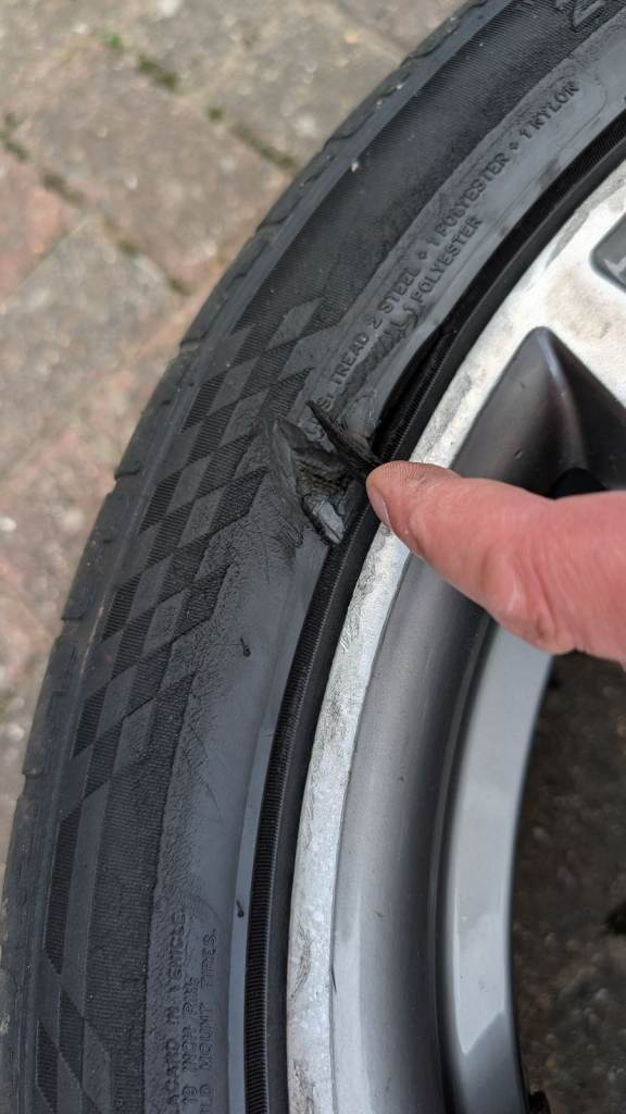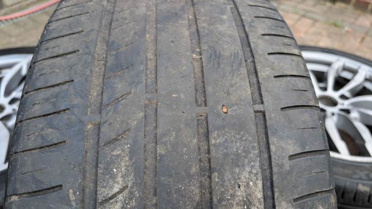 Tyres are included free and do not form part of the sale. I've included tread depth info in the photos. All seems to have been replaced separately as on 2mm, 4mm, 6mm and 8mm. All hold air, apart from 2mm tread, which has a puncture. Side wall damage to one tyre as photo.