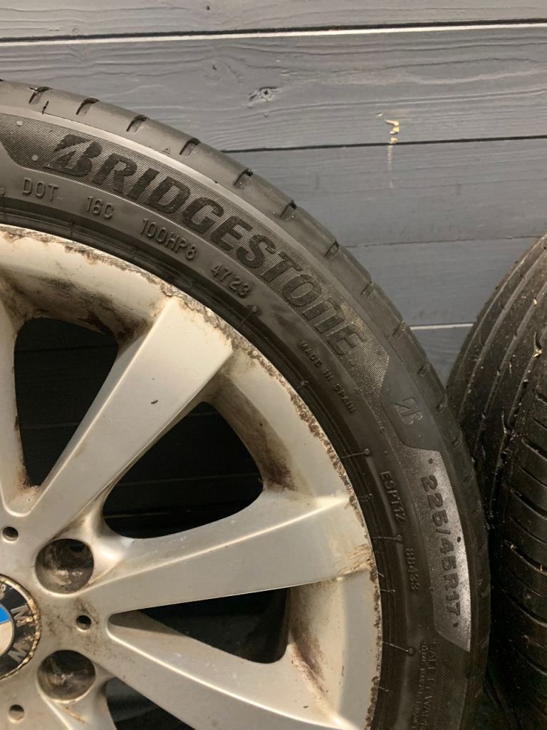 BMW 3 SERIES 17" GENUINE ALLOY WHEELS FIT 2000-2015 E90 E91 E92 E46 F30 SET OF 4 ALL GOOD TYRES ALL HOLD AIR & ALL HAVE LEGAL TREAD NO CRACKS NO BUCKLES NO WELDS ALL CENTRE CAPS 5x120 STUD PATTERN TYRE SIZE - 225/45/ZR17 PART NUMBER - 6783631 TYRE BRAND BRIDGESTONE & DAVANTI WHEELS WOULD BENEFIT FROM A DEEP CLEAN & LIGHT REFURB BUT ARE STILL READY TO USE STRAIGHT AWAY COLLECTION FROM DERBY AREA LOCAL DELIVERY ALSO AVAILABLE £180 OR NEAR OFFER