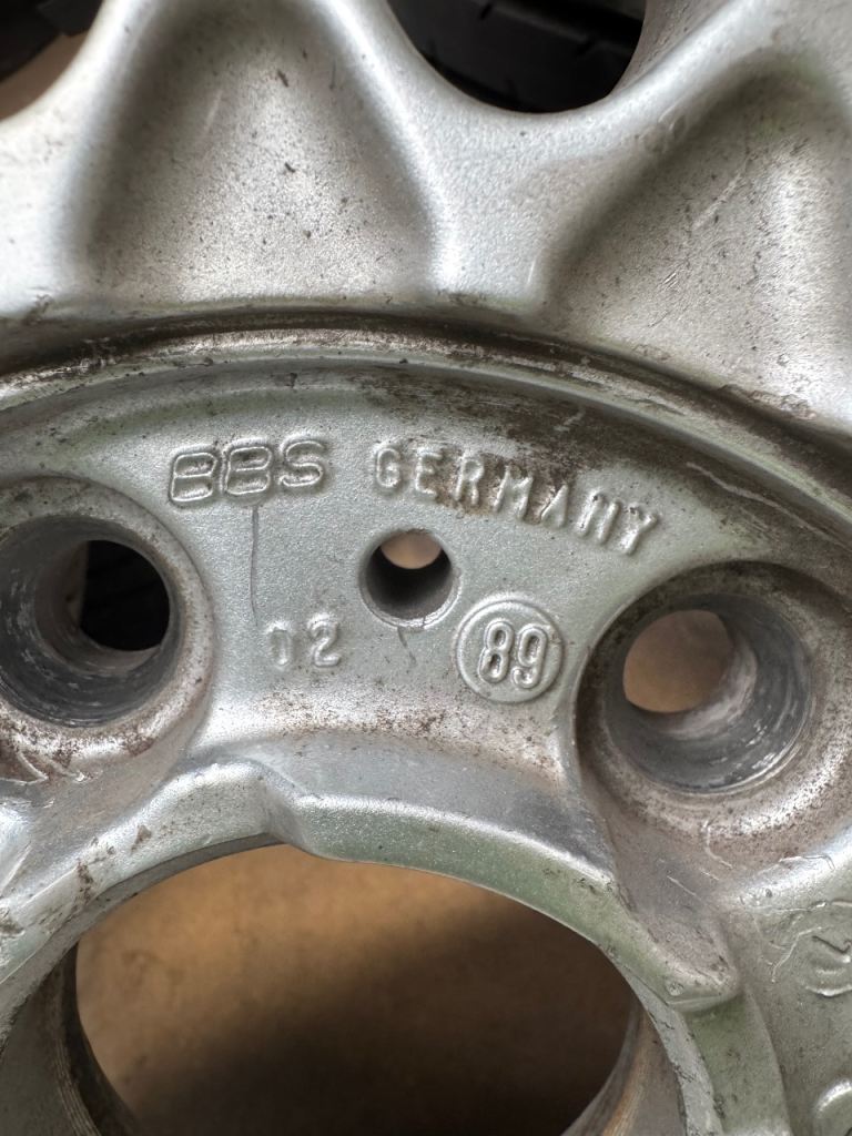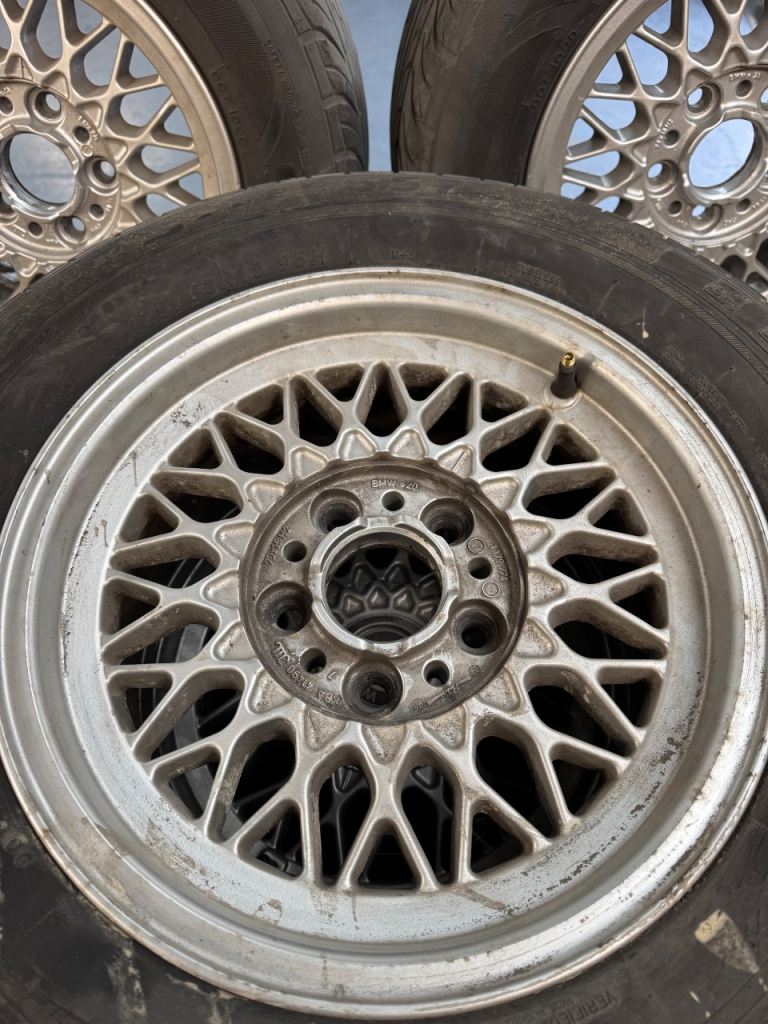 4 original bmw BBS wheels. X2 tyres with good tread but other 2 will need new tyres. Can do a full refurb/powder coat for £200
