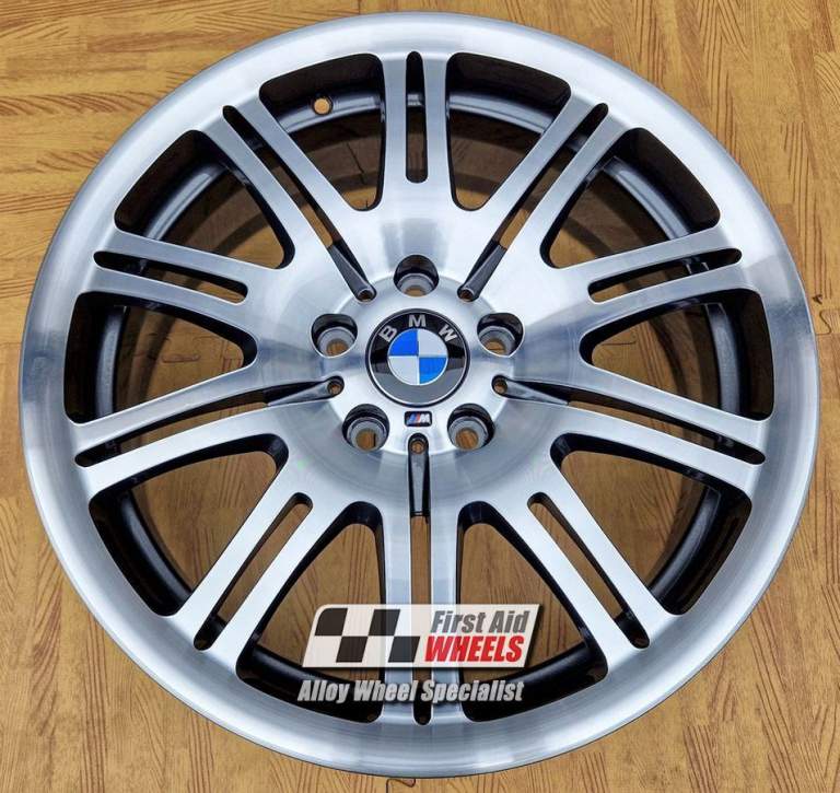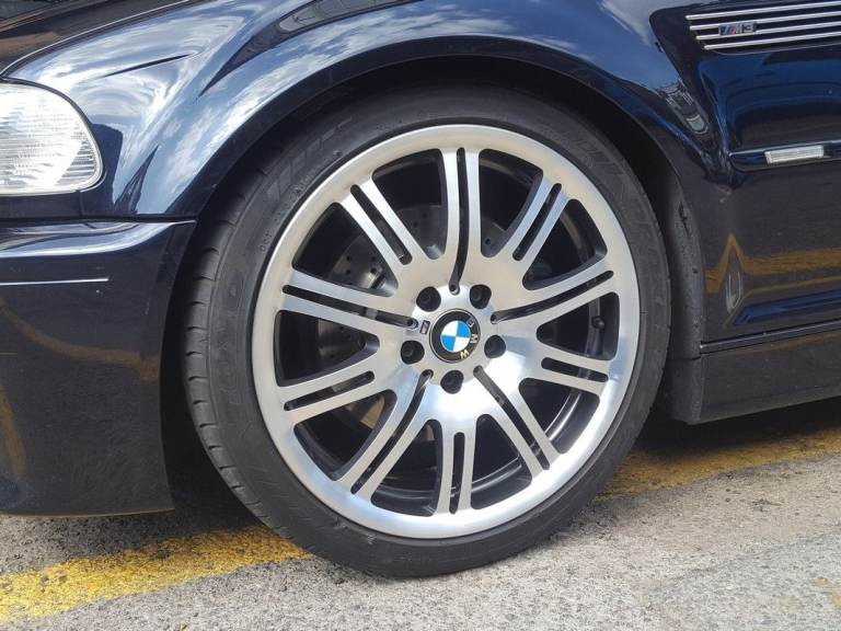 You can buy or maybe part exchange this 1x 19'' genuine OEM (Original equipment manufacturer) BMW 3 Series E46 M3 67M front alloy wheel. It will be fully factory refurbished to original dark grey finish with powder coating (very strong durable finish baked in the oven) and diamond cut, lacquered. A new genuine M sticker will be applied. The level of the metal can vary slightly from the stock photos.