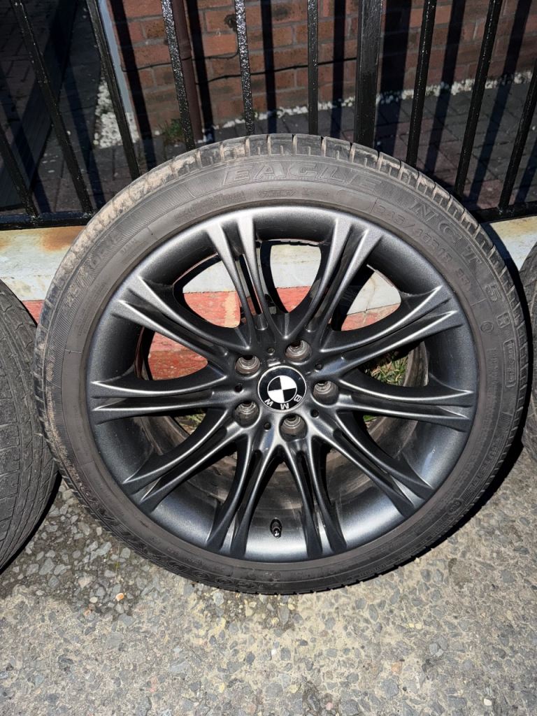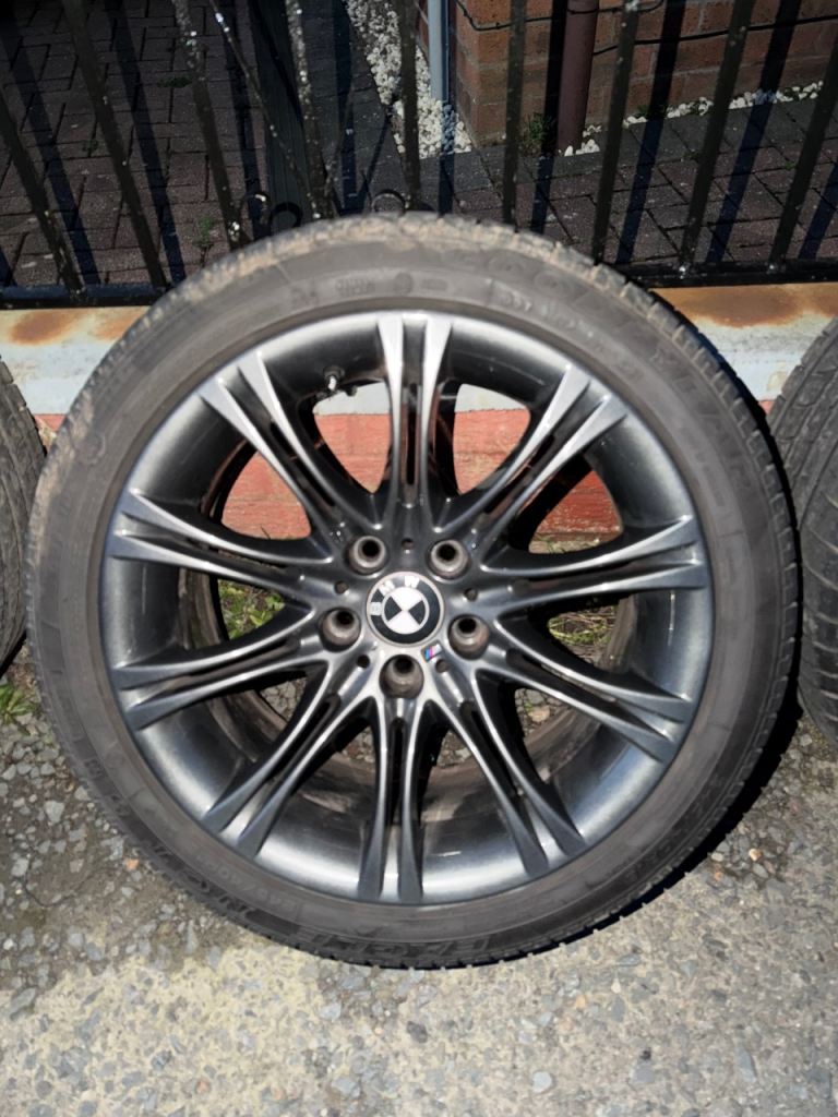 Hi selling my BMW MV2 Alloys in very good condition. Came of my E60 5 Series. All tyres are runflats, 3 tyres have around 2-3mm and other 4-5mm. Tyre sizes are 245/40/18. Anthracite grey colour. No cracks or buckles. Collection only. £330 for the set.