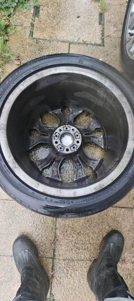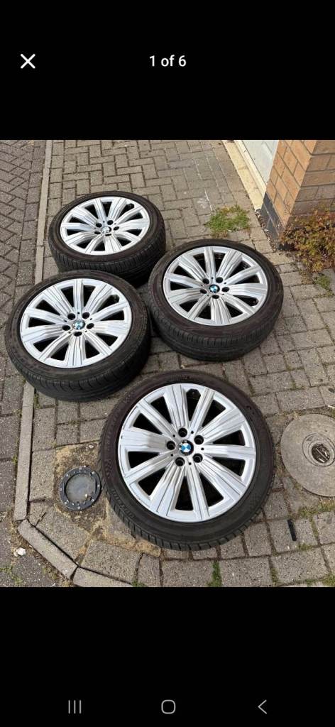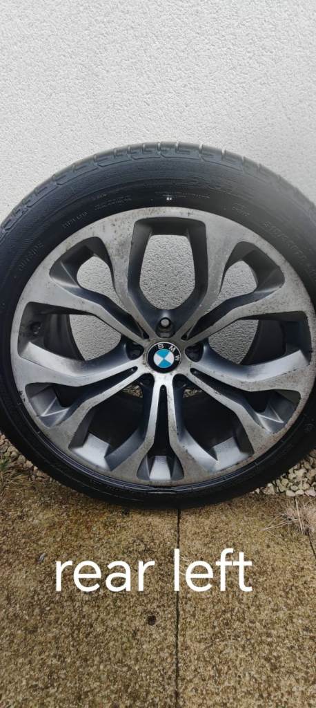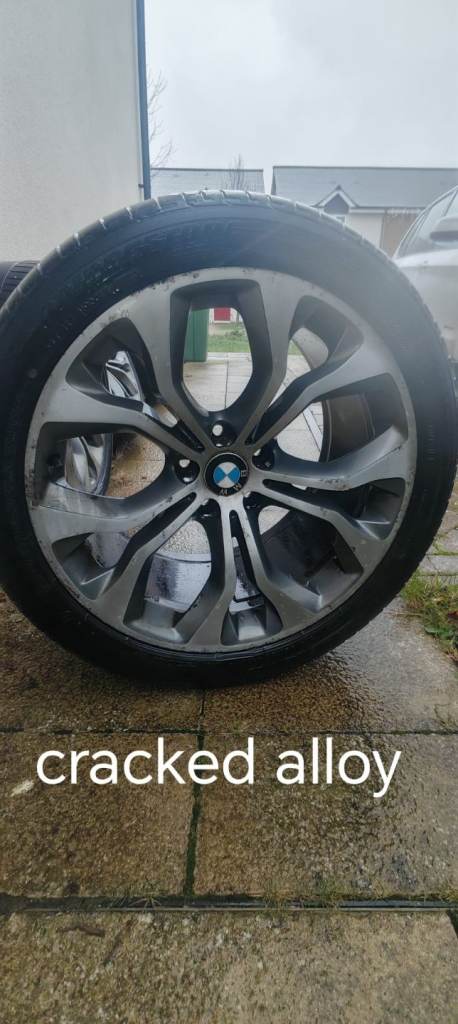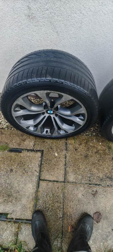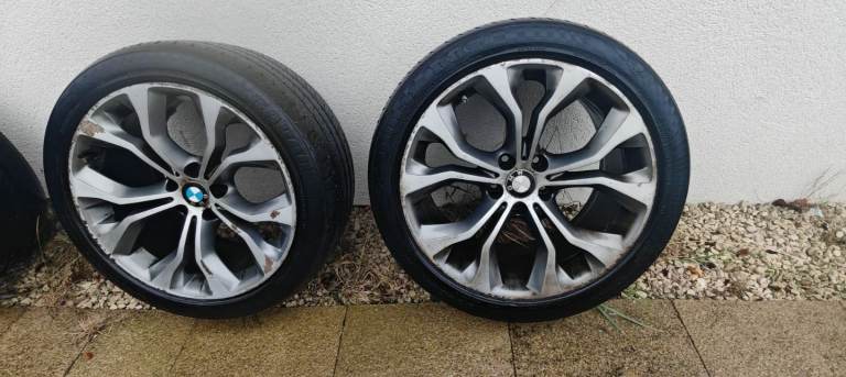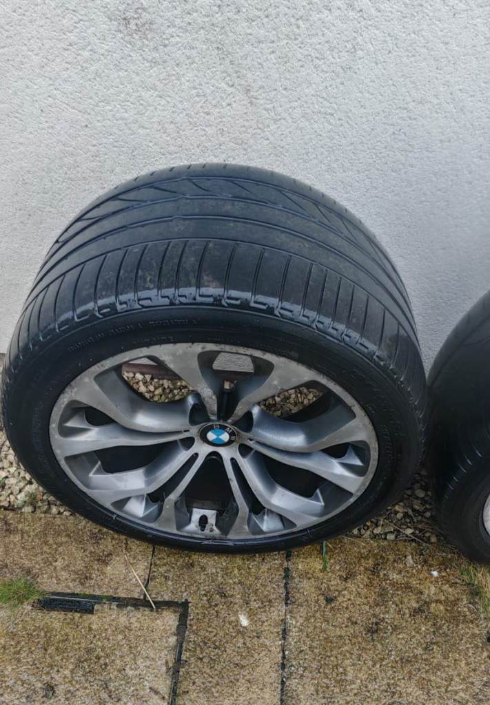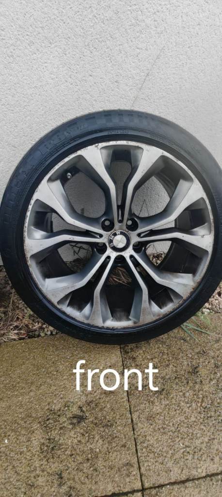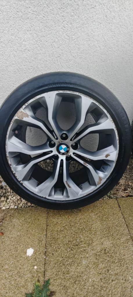 Original X5 20" alloy wheels , one wheel has a crack, two front tyers are good condition but not the rear tyres.