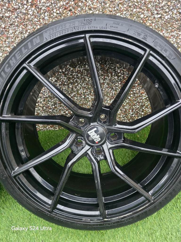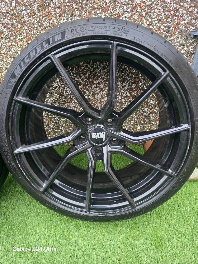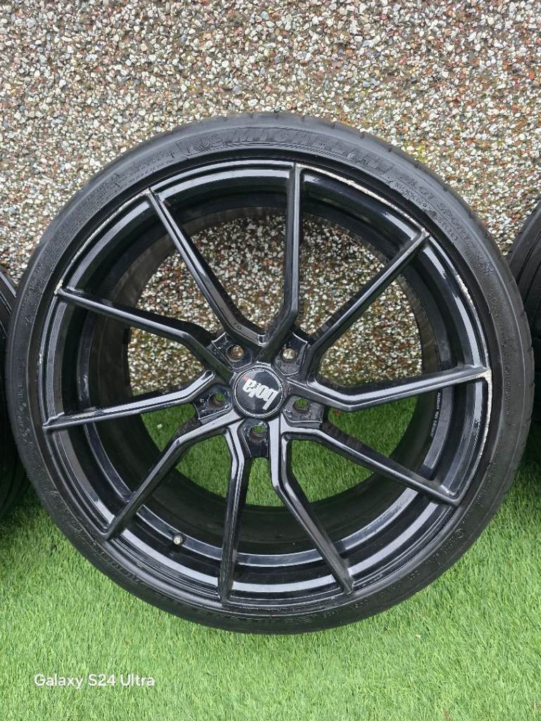 Hi a set of Bola alloys 19 inch 5x112 Michelin sp4 tyres 3 are good still life left in them all alloys have cracks in them 3 of them still hold air