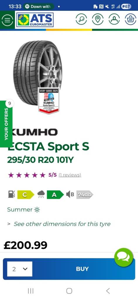 Kumho Ecsta Sport S Tyres (295/30/20 101Y)