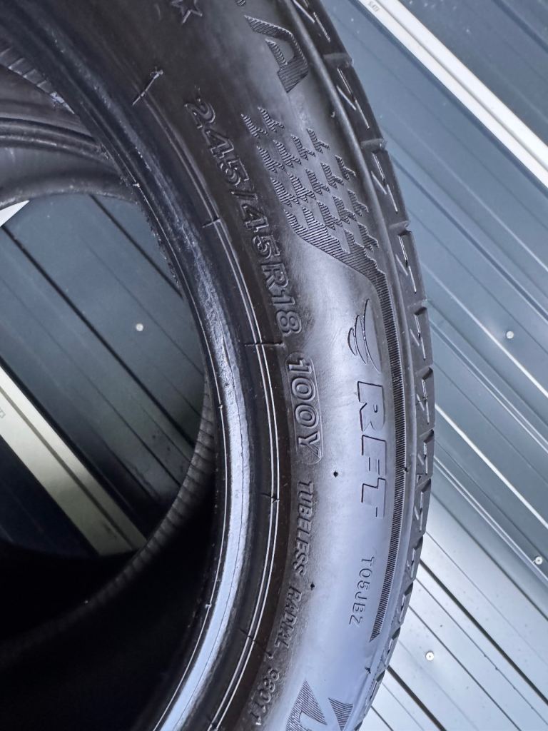 Selling a pair of Bridgestone Turanza run-flat tyres, size 245/45/18 100Y.