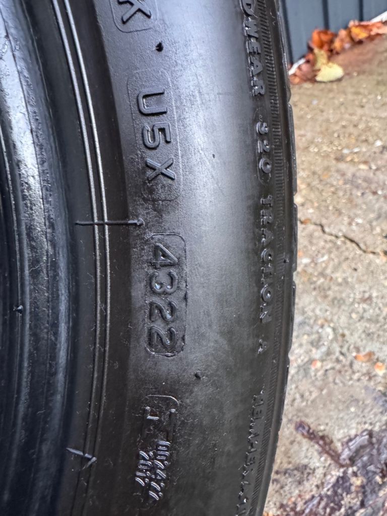 • Both tyres evenly worn, no sidewall damage