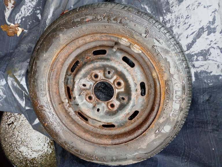 We have a selection of Classic Mini 12 steel wheels with tyres on.
