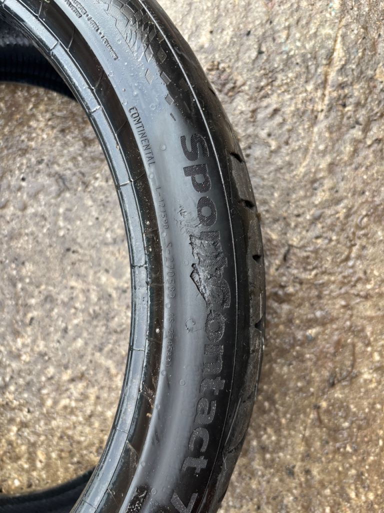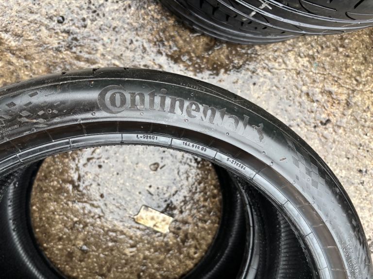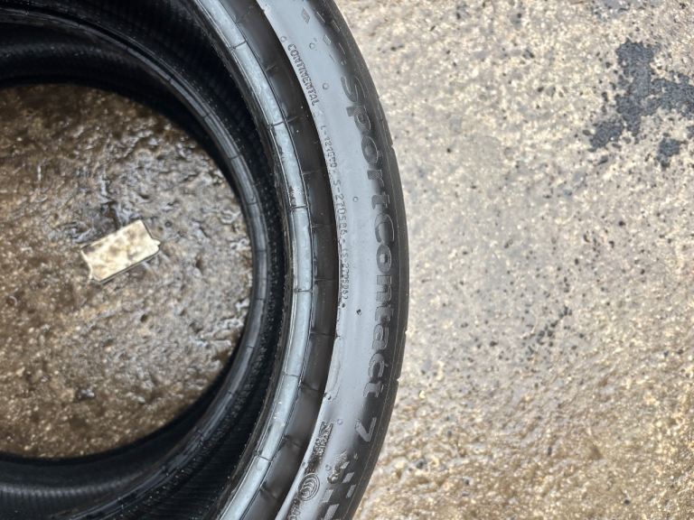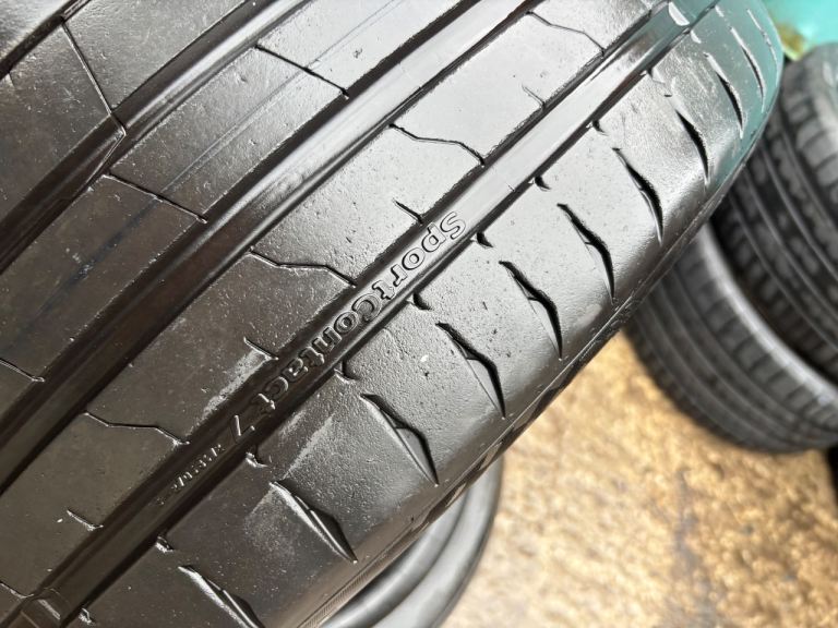 BOTH TYRES ARE THE SAME WITH MATCHING 5.5MM MINIMUM TREAD LEFT . ALL ARE EVENLY WORN ACROSS THE CIRCUMFERENCE OF THE TYRES . 1 TYRE IS DAMAGE FREE WITH NO REPAIRS 1 TYRE HAS A SCRATCH ON THE SIDEWAY DOESN’T GO THROUGH TO ANY CORD . THESE TYRES RETAIL AT £147 EACH NEW .