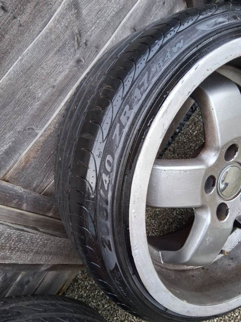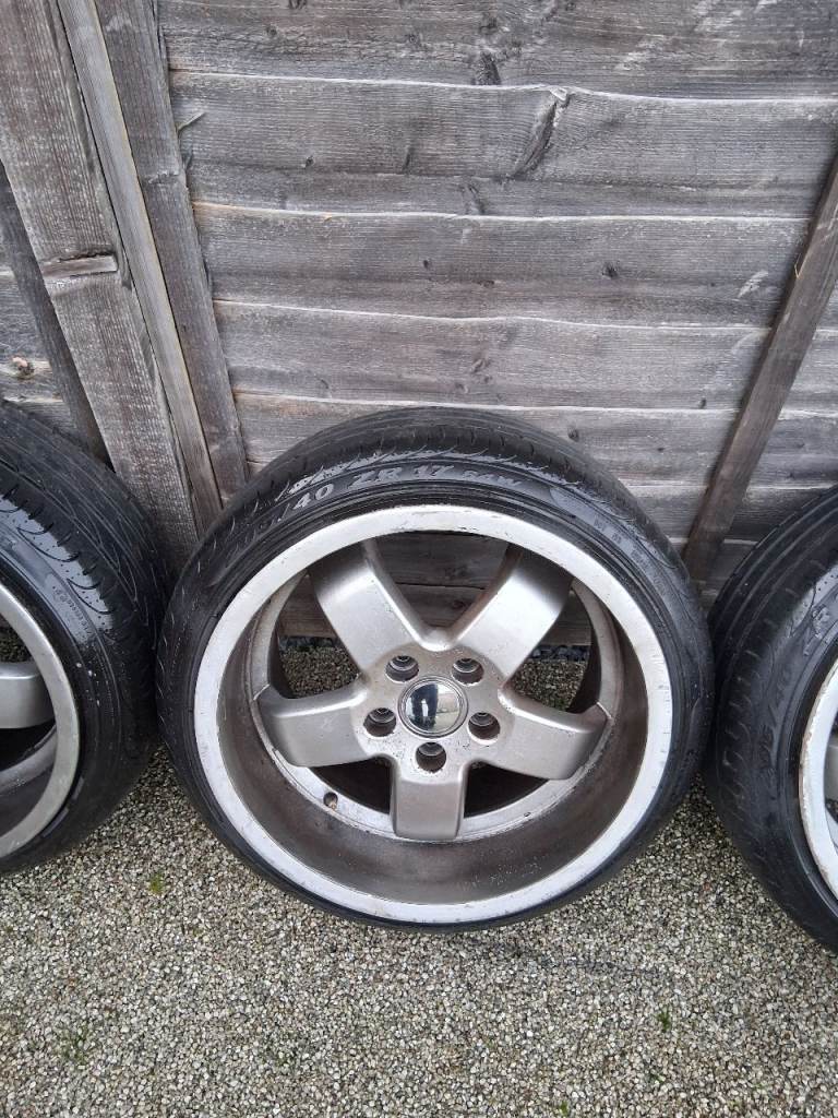 Set of deep dish alloy wheels 17 x 9.5 with a pcd off 5x114.3 and et 35 with Pirelli PZero 205/40/17 tyres all with around 4mm tread , brought but never used tried on but to small for me Wheels could do with a fresh repaint if fussy there tatty looking, collection only from LE38ED Thanks