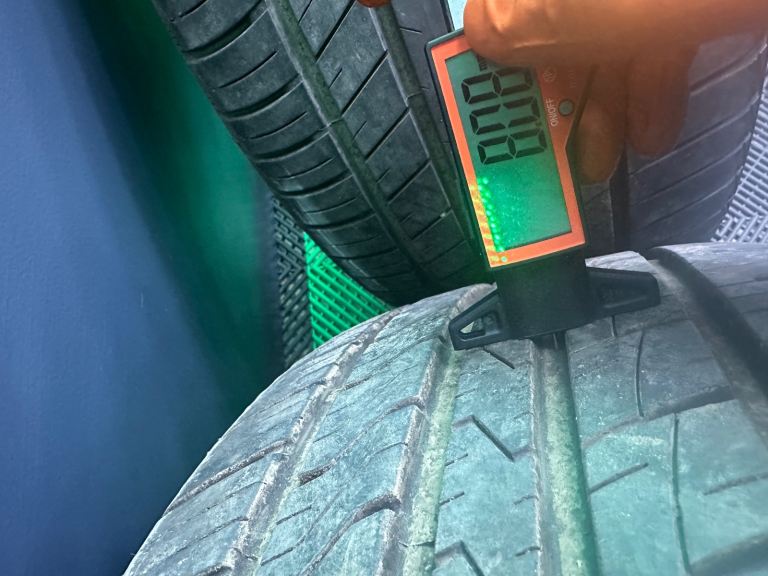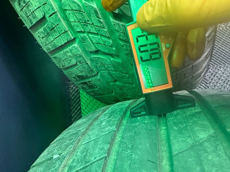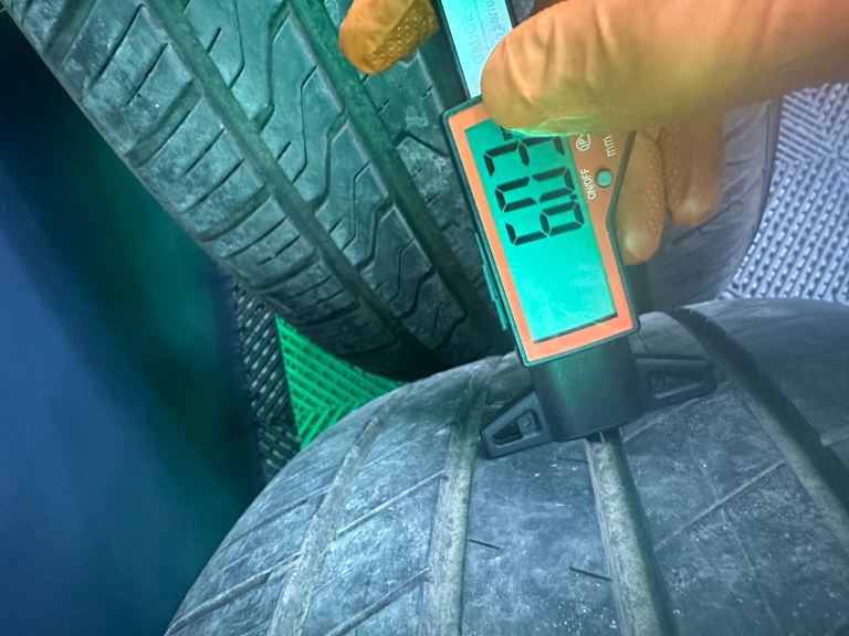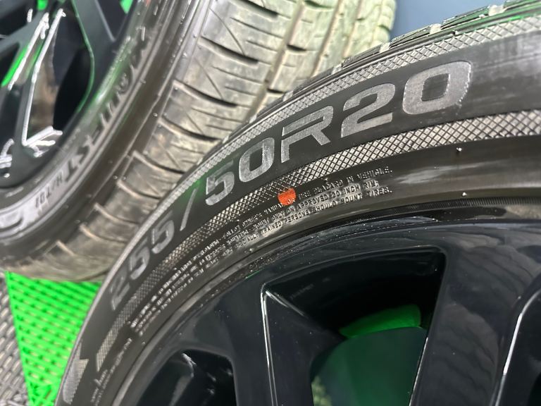 255/50/20 x2 RoadX RX Quest (DOT1225), x2 Admiral GRB009 (DOT2224) digitally tested centrally as 8.11mm, 8.08mm, 8.05mm, 6.03mm, 6.03mm. Excellent value for genuine rims that’s just been professionally powdered, black centre caps and excellent tyres!