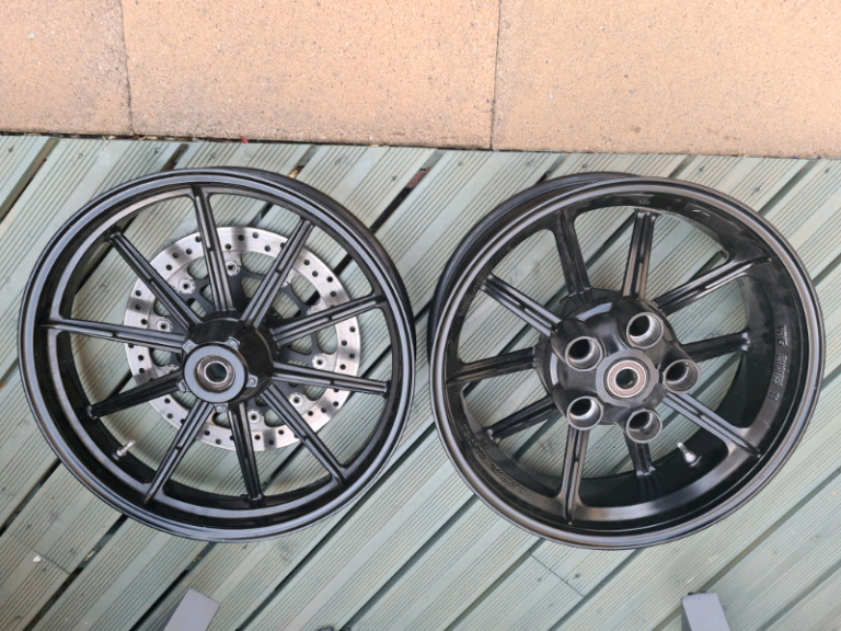 As new as fitted spoke wheels to my bike instead. Front has brand new brake disc fitted. Can deliver within reason. Size on pics. Any reasonable offers considered.