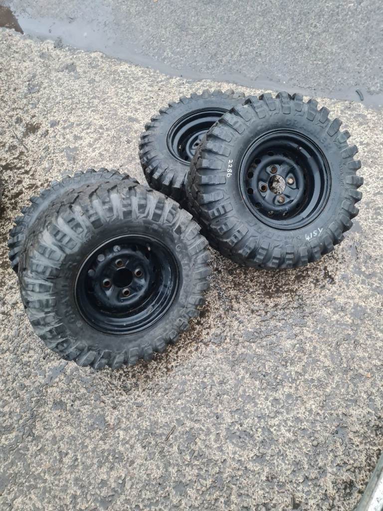 On steel rim. Never been driven. Good as new.