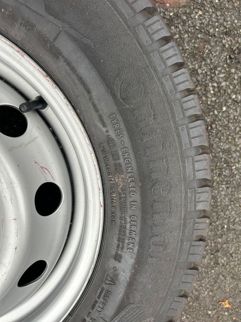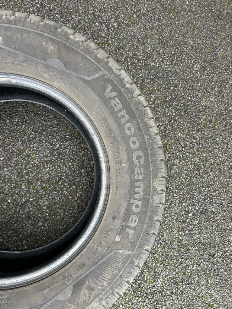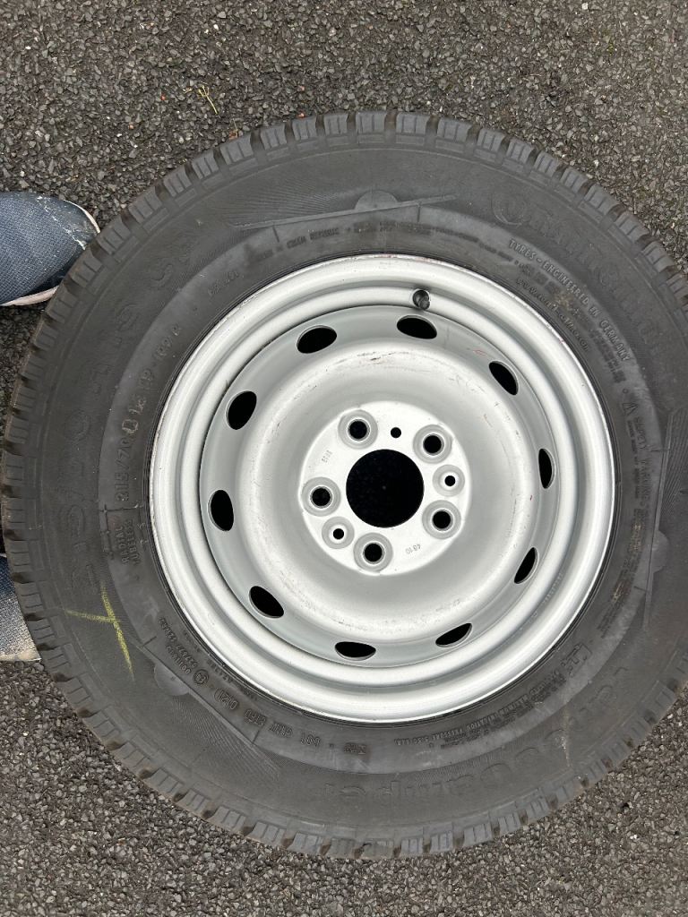 Two Continental VancoCamper Tyres and one rim. Good condition 6mm tread, some wear on wall. 215/70 R15