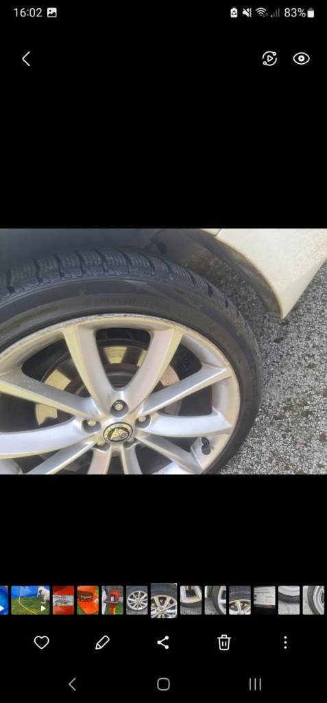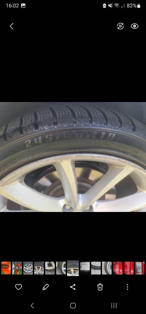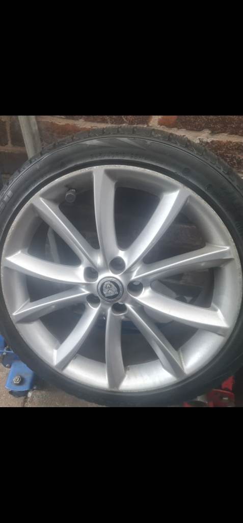 For sale are my 245/40/19 jaguar xf alloys 5x108 3 tyres are good one is brand new will fit ford/jaguar/volvo all hold air fine and have no buckles or wobbles have marks on sides but do clean up nice as seen in photos I have put 18s on now so no longer needed. They have winter tyres on them £250 no time wasters please they are doing £350 on ebay and are not in as good condition as these cheers for looking 👍
