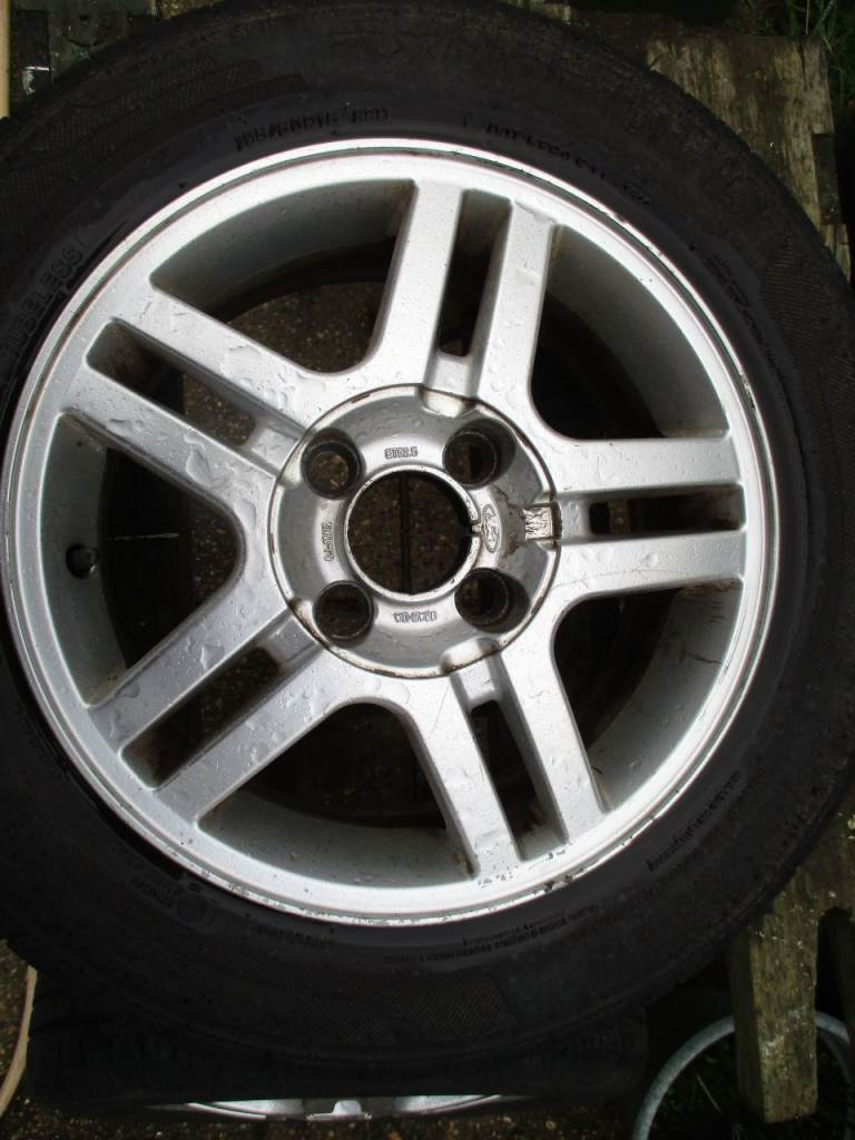 Set of 4 Ford alloy wheels and tyres. There are also the centre caps included.