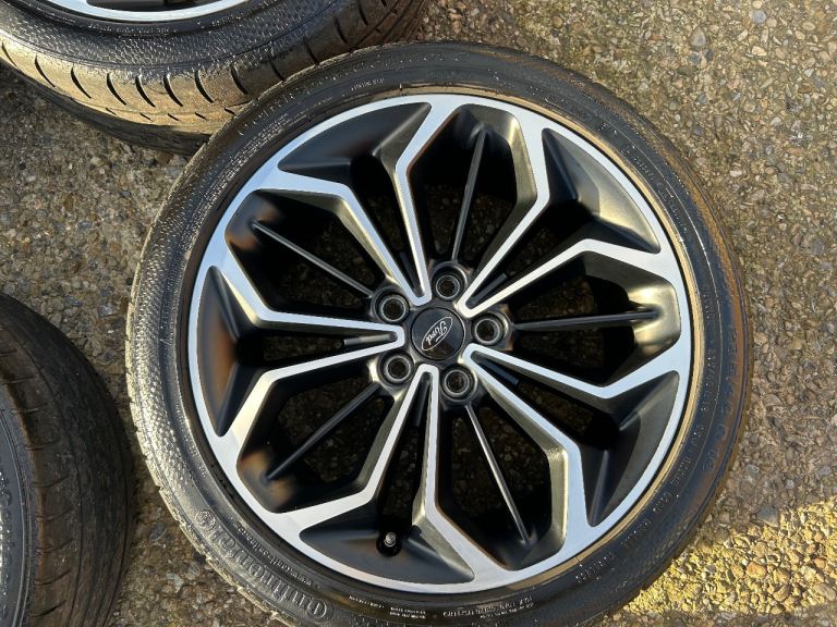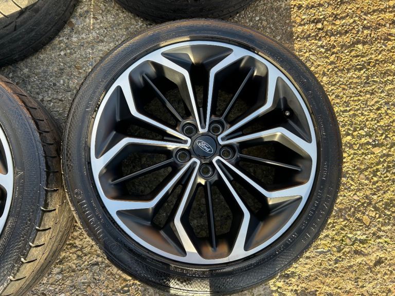 Ford focus genuine Ford wheels all with continental tyres 2 tyres are very good and 2 will need replacing soon they came off my 2020 Ford focus ST line will also fit transit connect and mondeo and lots of other Ford 5x108