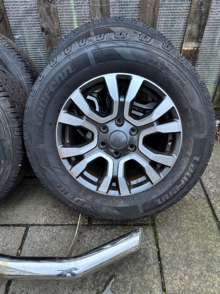 Set of 4 Ranger Wildtrak alloys & tyres, 265/60R18 tyres with 5mm/6mm with good tread + TPM valves fitted. Removed from a 2023 T8 Ranger due wheel upgrade with a Stainless Steel front bull asa Xmas extra!
