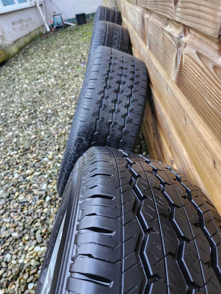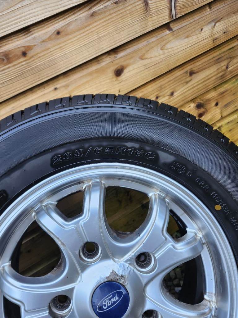 Wheels has sum surface rust in parts ....sand blast and power coat will sort that...rims are all straight no leaks...genuine ford transit alloys with 3 ok tyres and 1 fairly new...