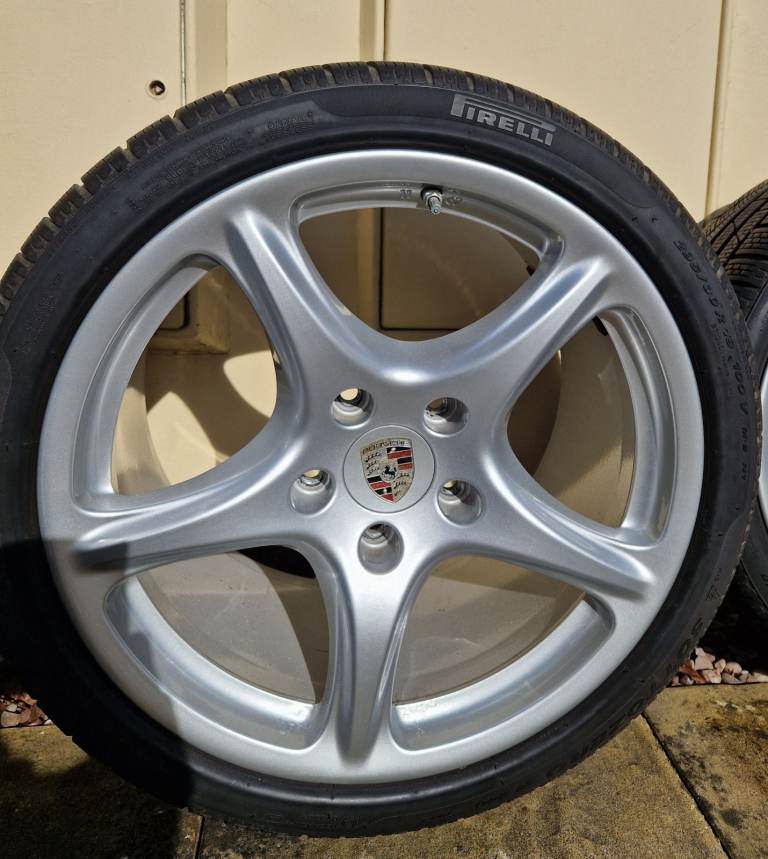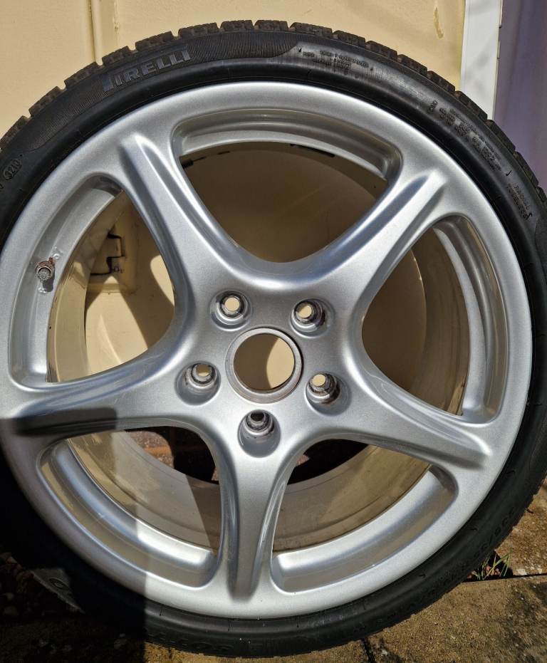 Four 19-inch Porsche 911 Carrera Alloy Wheels with TPS and Four Pirelli Sottozero Tyres