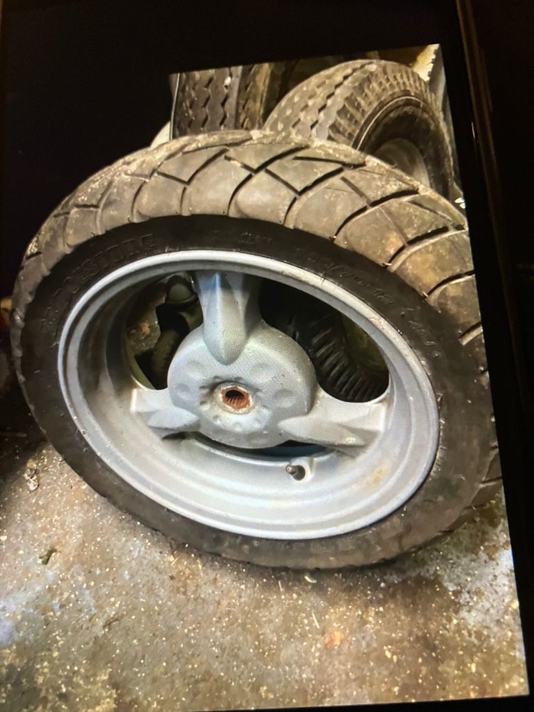 Front and rear scooter wheels and tyres size 130/70/12 tyres in excellent condition