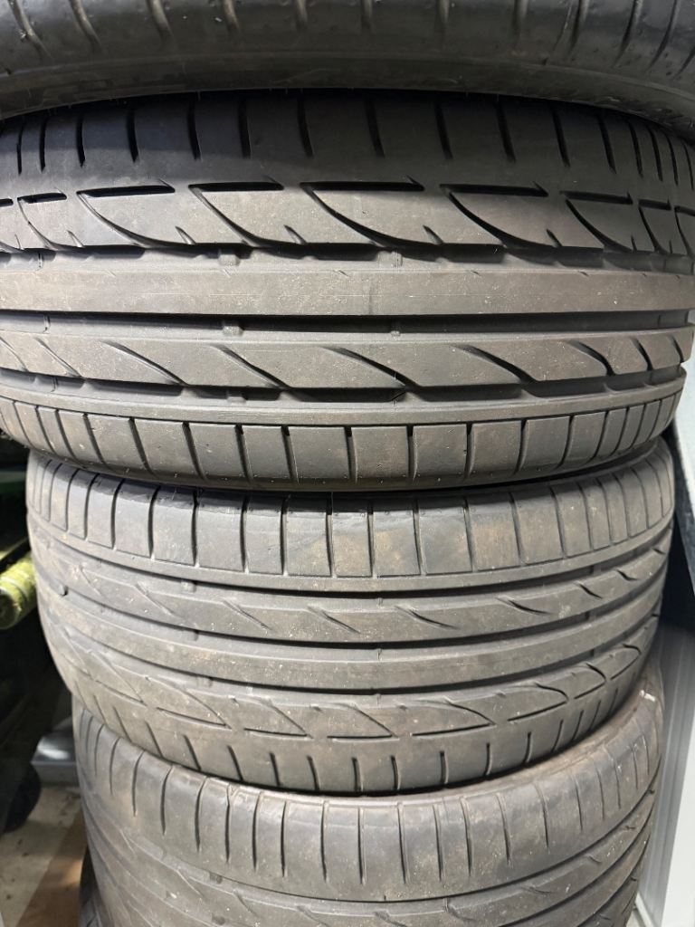 Four matching Bridgestone Potenza Runflat tyres off a BMW 120D with more than 5mm thread and no edge wear. No side wall damage.
